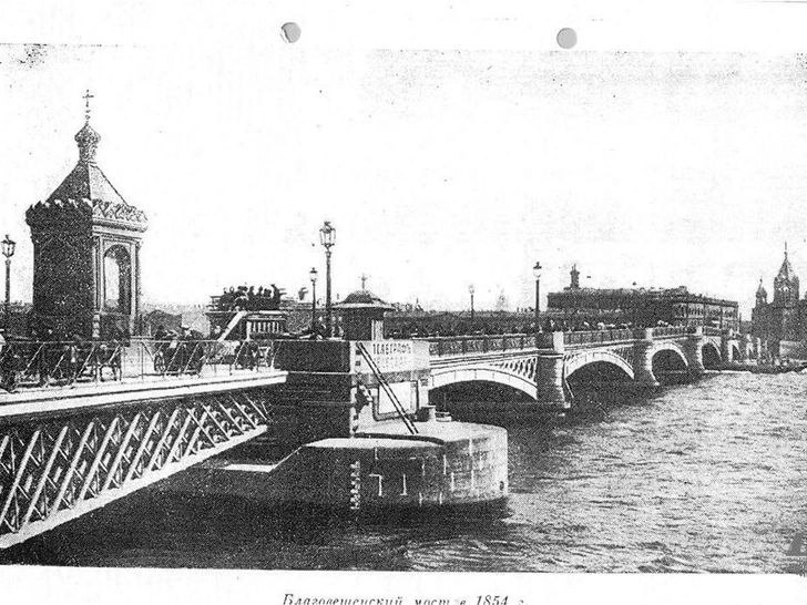 😎Открытый в 1850 году Благовещенский мост был первой постоянной переправой через Неву. Он был восьмипролетным, чугунным. Разведение осуществлялось с помощью поворотной системы: два крыла со стороны Васильевского острова раздвигались в горизонтальной плоскости, параллельно поверхности воды. 😎На момент своего открытия Благовещенский мост был самым длинным в Европе — около 300 метров. В 1936–1938 годах его перестроили, сделав разводным средний пролет. 😎Фонари со старого моста сейчас стоят на Марсовом поле. После демонтажа с моста они побывали в разных уголках Петербурга. В частности, их видели на Дворцовой площади. В 1934 году 16 из 20 фонарей установили на Марсовом поле. Петербургские истории 📝 Лучшие места и истории 👼