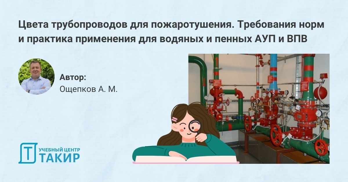 Цвета трубопроводов для пожаротушения. Требования норм и практика применения для водяных и пенных АУП и ВПВ Цвет трубопроводов — это не эстетика, а инструмент безопасности. Наш коллега Андрей Ощепков подготовил подробную статью-руководство, где рассмотрел практические аспекты применения норм для водяных и пенных систем. Вот главные тезисы: 1⃣ Три основных типа окраски: - Опознавательная — что течет? (вода, воздух, пенообразователь) - Сигнальная (красная) — где управление? (арматура, насосы) - Защитная — от коррозии 2⃣ Нормативная база по цветам трубопроводов для АУП и ВПВ 3⃣ Опознавательная окраска и цифровое обозначение металлических трубопроводов пожаротушения 4⃣ Сигнальная окраска трубопроводов и оборудования 5⃣ Защитная окраска 6⃣ Когда окраска трубопроводов не требуется 🔗 Читать полный разбор (https://clck.ru/3RLqJg) ➖➖➖➖➖➖➖ Хотите погрузиться в мир проектирования АУП? Приглашаем на онлайн курсы по проектированию водяного и пенного пожаротушения, а также ВПВ. Набор