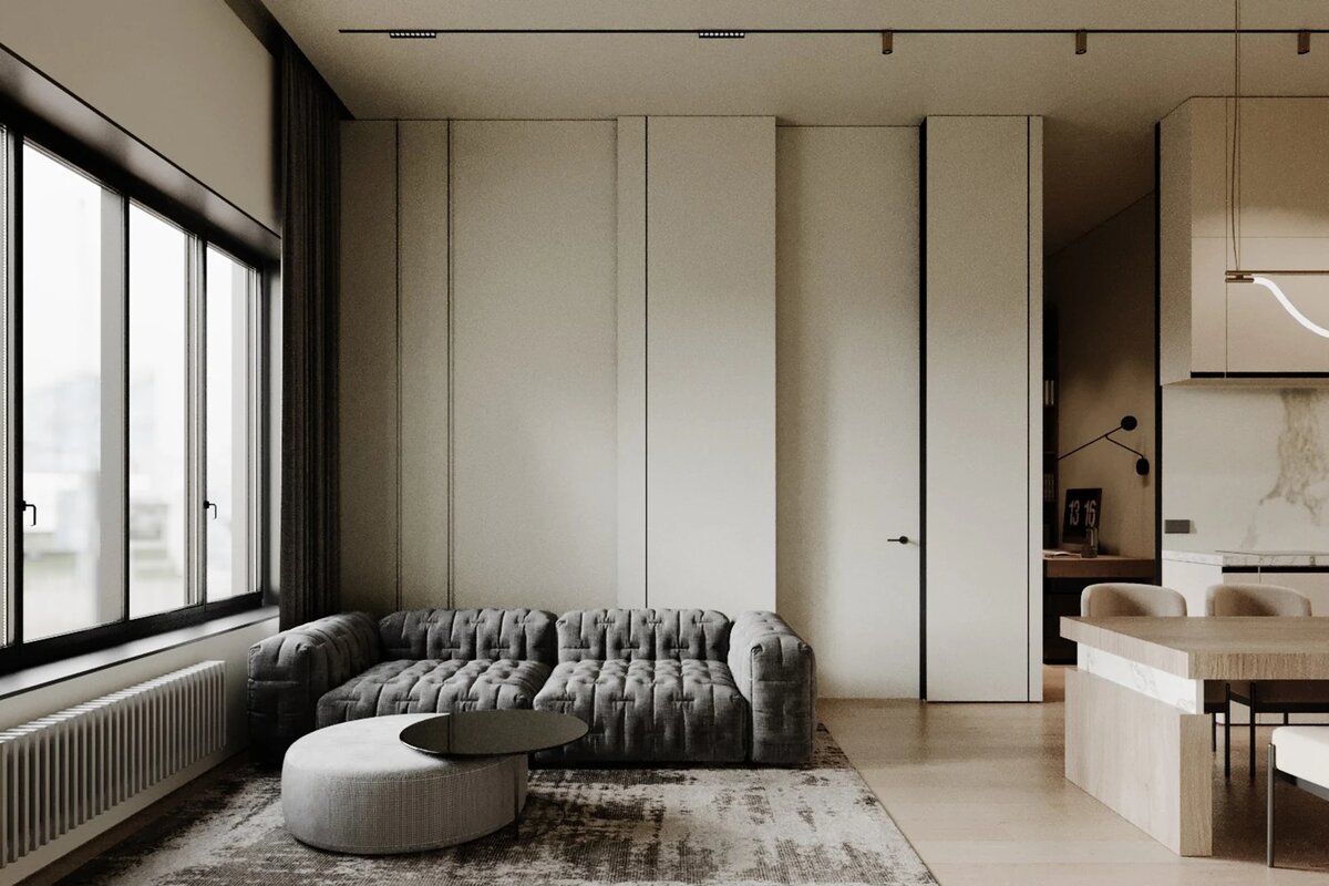 Этот проект — ответ на ритм большого города. Трёхкомнатная квартира становится тихой гаванью, где главные герои — свет и натуральные материалы. Холодная графичность мрамора и тёплая, живая текстура дерева ведут диалог во всех помещениях. Они не соперничают, а дополняют друг друга, создавая многослойную, тактильную среду. Светлая палитра не просто визуально расширяет границы — она работает как холст, на котором играют блики солнца на полированном камне и глубокие тени в фактуре древесины. Каждая деталь, от мраморной столешницы до дубового паркета, подчинена единой цели: создать атмосферу глубокого отдыха и восстановления сил.
