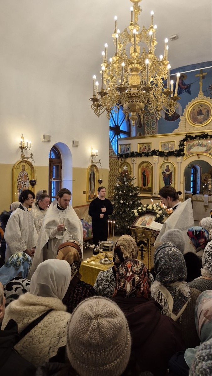 С утра была на службе , на фото момент водосвятный чин 🫶
