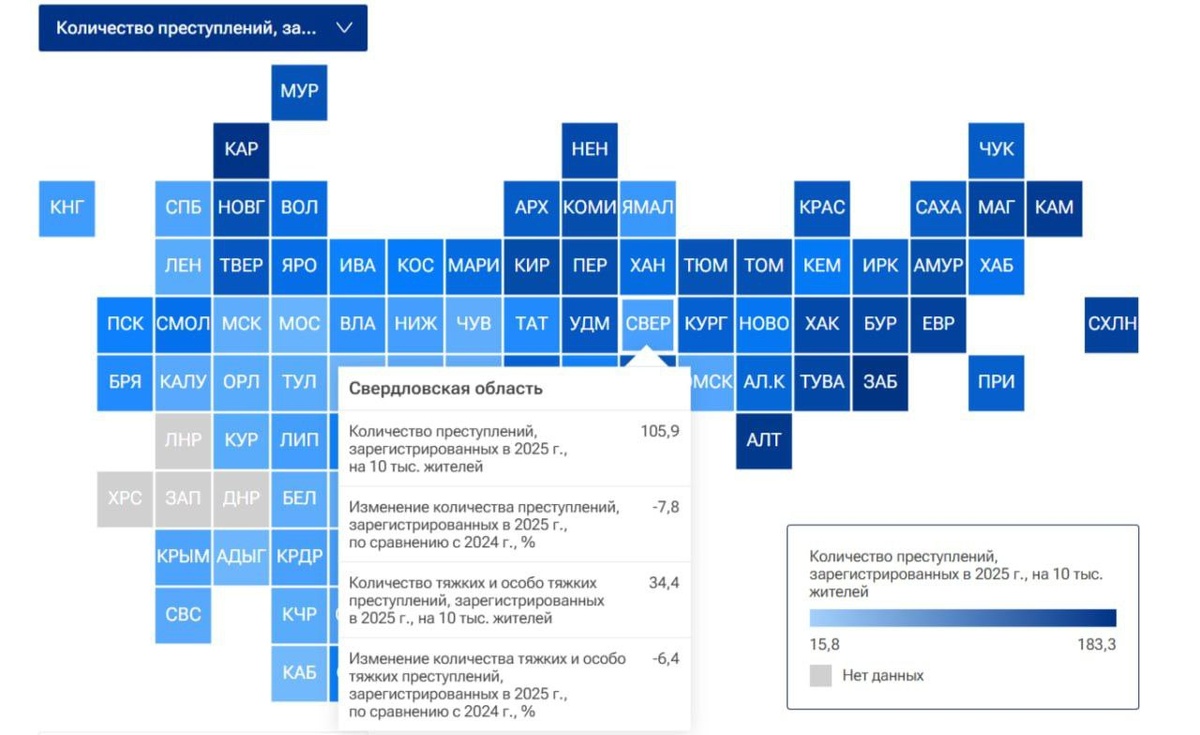 В регионе на 10 тысяч человек приходится 105,9 зарегистрированных преступлений. По сравнению с 2024 годом их число сократилось на 7,8%. Годом ранее он занимал 24-е место, говорится в исследовании «РИА Рейтинг». Меньше всего преступлений происходит в Чечне, Ингушетии и Дагестане, а больше всего — в Карелии, Забайкальском крае и на Алтае. 📍Подписаться | Предложить новость | Дать «буст»