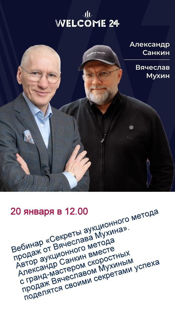 Коллеги, приглашаем вас на вебинар, который состоится уже завтра 20 января в 12.00 «Секреты аукционного метода продаж от Вячеслава Мухина