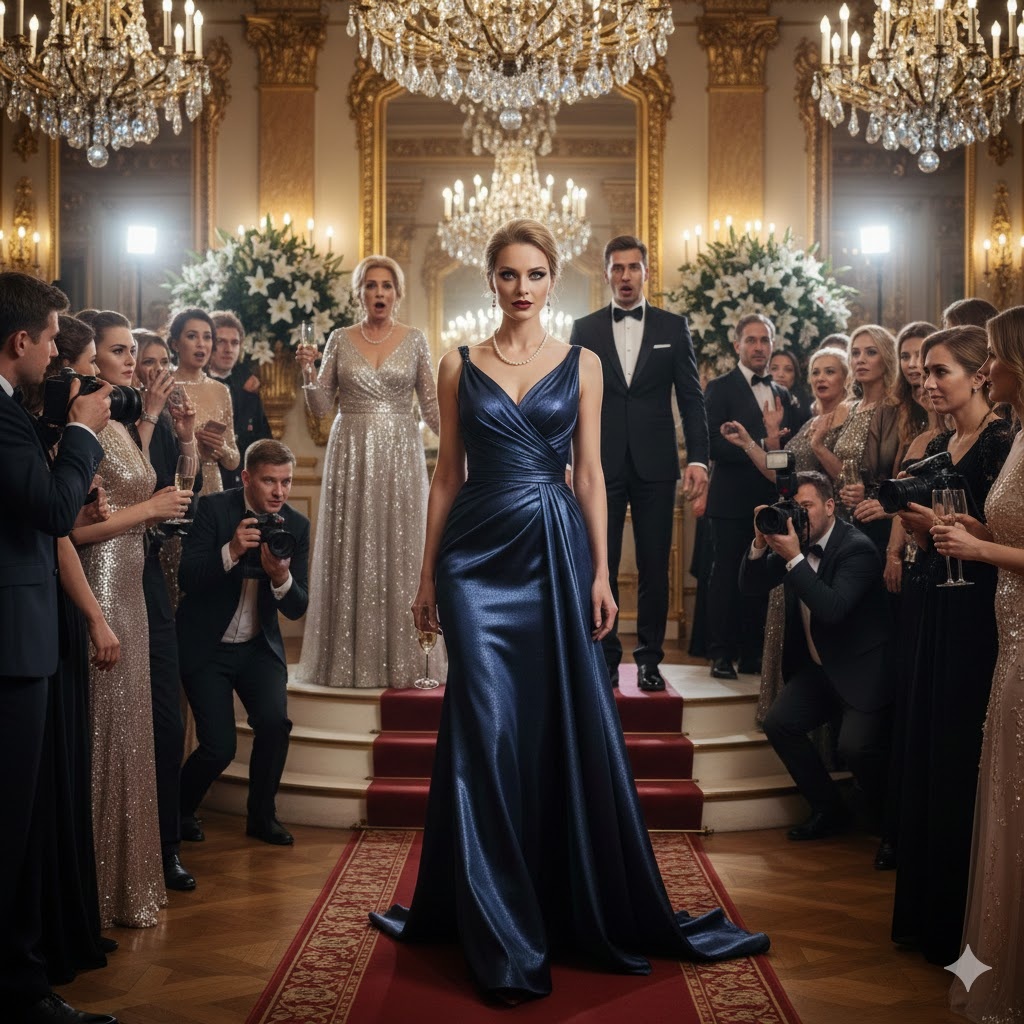 Охранник замешкался, сраженный её уверенностью, и отступил. Катя толкнула массивные двери золоченого зала. Музыка, смех и звон бокалов на мгновение стихли, когда она замерла на пороге, освещенная софитами.