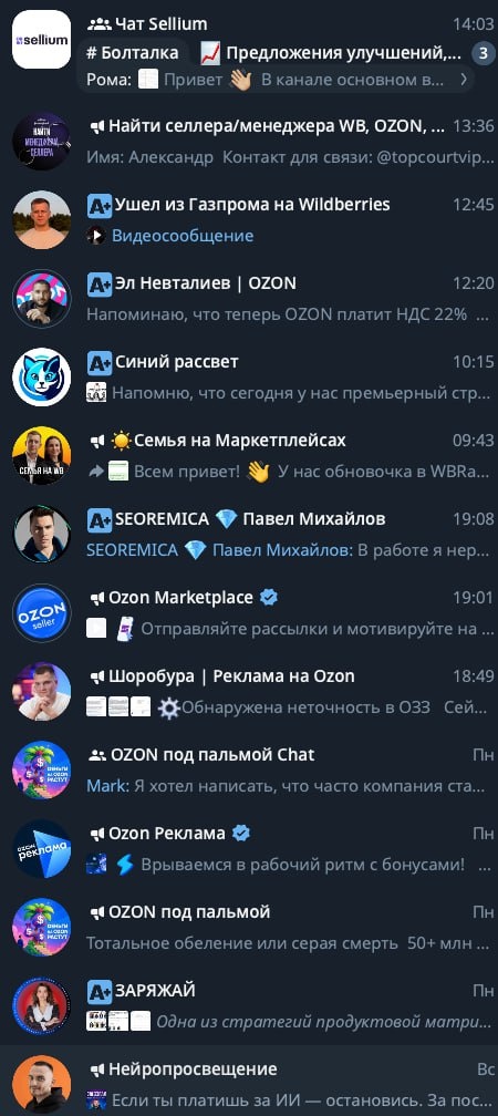 Мы все знаем простую вещь: окружение имеет значение. Работа менеджера маркетплейса — не исключение. Я знаю кейсы, когда люди целенаправленно: • по 10 раз в день обновляют личный кабинет Ozon, • перечитывают базу знаний, • пытаются быть «самыми первыми», кто увидит обновление. Для меня это странно. Хотя бы потому, что факт того, что я узнаю новость на 30 минут раньше, чем условный эксперт напишет о ней у себя в канале, ничего принципиально не меняет. Где я беру актуальную информацию? Да, как менеджер я обязан быть в курсе событий. Но делать это можно сильно проще и эффективнее. Сейчас есть бесплатный доступ к огромному количеству каналов. Найти 20–30 каналов по Ozon — не проблема. Дальше важен фильтр: • какие каналы про новости и обновления; • какие — глубоко про рекламу и связки; • какие — про аналитику, экономику, ассортимент; • какие — просто дают чужую практику и опыт. К рекламе, например, я захожу, когда: • нужно актуализировать связки; • понять, что сейчас работае