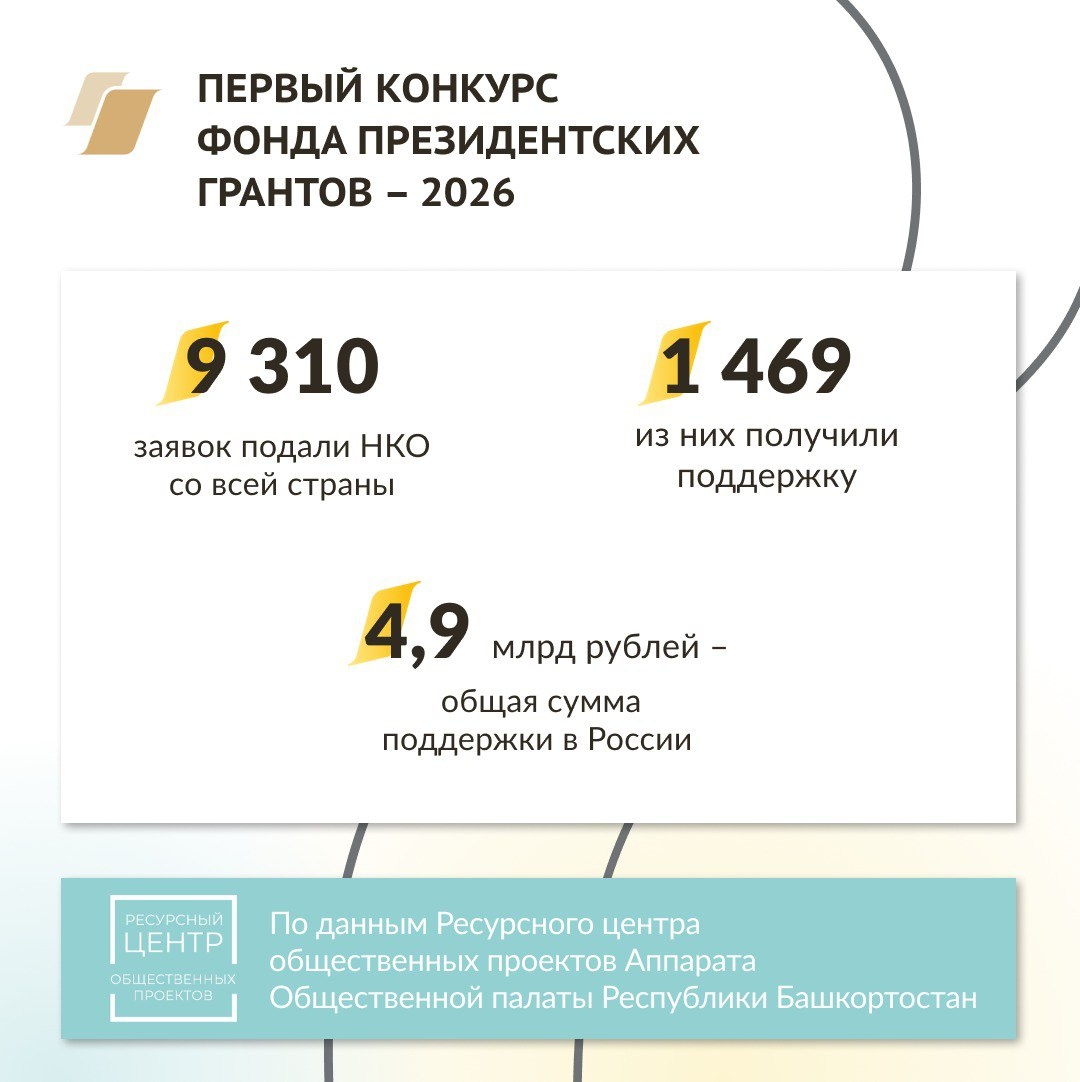Напомним, Башкирия вошла в ТОП-3 по количеству победителей первого конкурса Фонда президентских грантов 2026 года