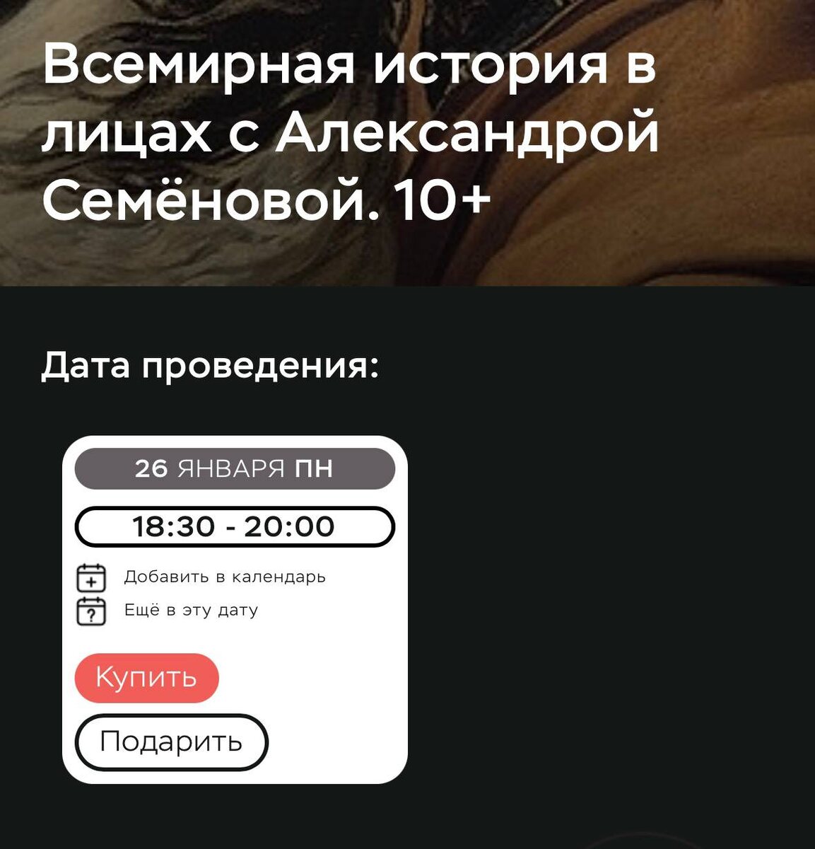 Это курс исторический, где уклон делается на известных личностей. Здесь и политика, религия, искусство, наука, даже бизнес! Познавательно будет не только для подкрепления школьной программы. Всем советую! Это совместный проект с ДК Лурье. Ссылка на курс здесь.