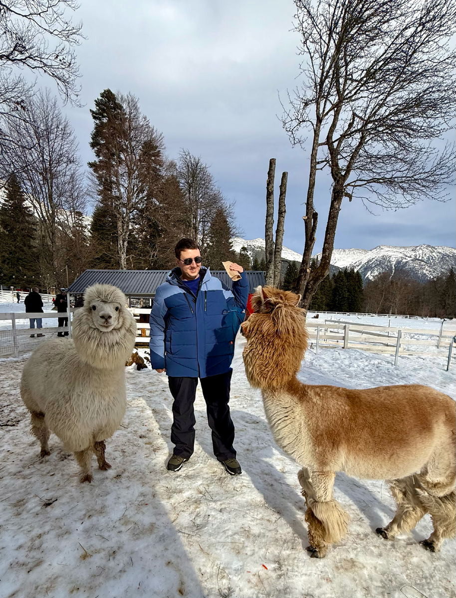 Помимо лыж, бордов и экскурсий к заснеженным и замерзшим водопадам, зимой (и не только) в Архызе можно посетить уникальную ферму альпак — контактный зоопарк, где можно пообщаться с животными и насладиться горными пейзажами.