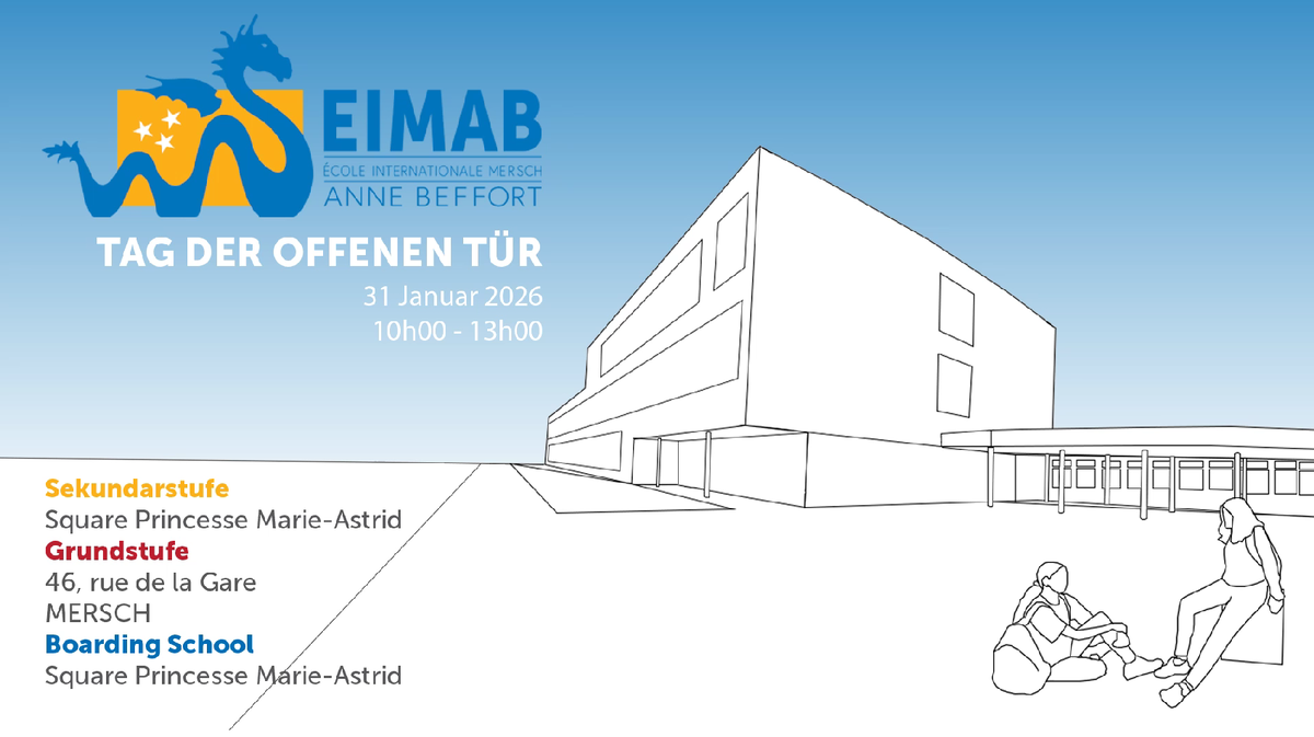 День открытых дверей в EIMAB (Anne Beffort) 📅 31 января 2026 🕙 10:00 – 13:00 📍 Mersch ✅ Приглашаем семьи познакомиться с международной школой EIMAB и школой-пансионом. Вы сможете: ▫️узнать об образовательных программах (Grundstufe, Sekundarstufe, Boarding School), ▫️пообщаться с администрацией и педагогами, ▫️увидеть учебную среду и инфраструктуру, ▫️задать вопросы о поступлении и проживании. Отличная возможность лично почувствовать атмосферу школы и понять, подходит ли EIMAB вашей семье. Наши Telegram-каналы: ℹ️ Актуальные новости Studyin_LU 💬 TG для консультаций: https://t.me/studyinLUX_assist