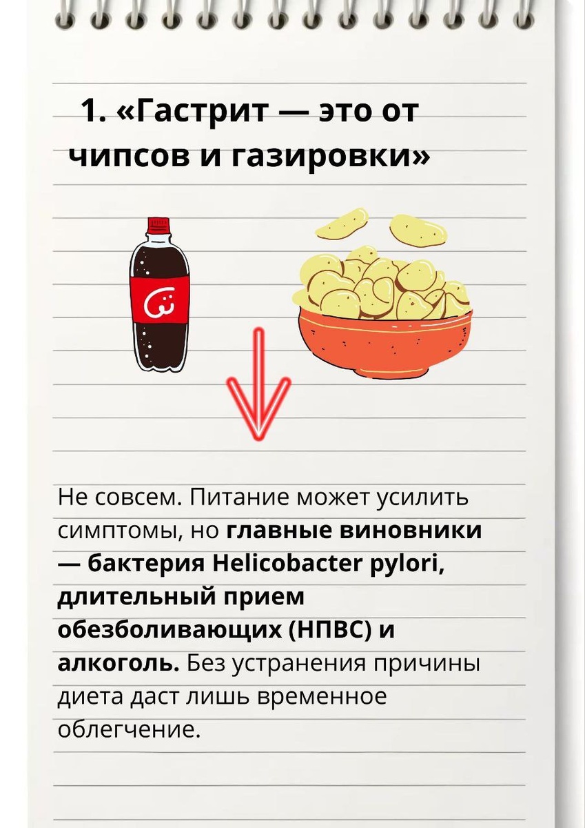 Как гастроэнтеролог, я часто сталкиваюсь с заблуждениями, которые мешают людям выздороветь. Разбираем главные. Листайте карусель ➡️ Признавайтесь, кого из вас в детстве пугали тем, что "от сухомятки будет гастрит"? 🙂 Ставьте ❤️ нашей осознанности и умению доверять фактам, а не страшилкам.