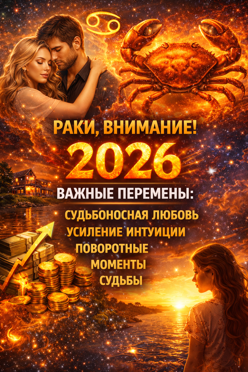 Вы — знак воды, глубоких эмоций, семьи и интуиции. В 2026 вы столкнётесь с испытаниями, которые проверят вашу готовность к переменам и зрелость решений.