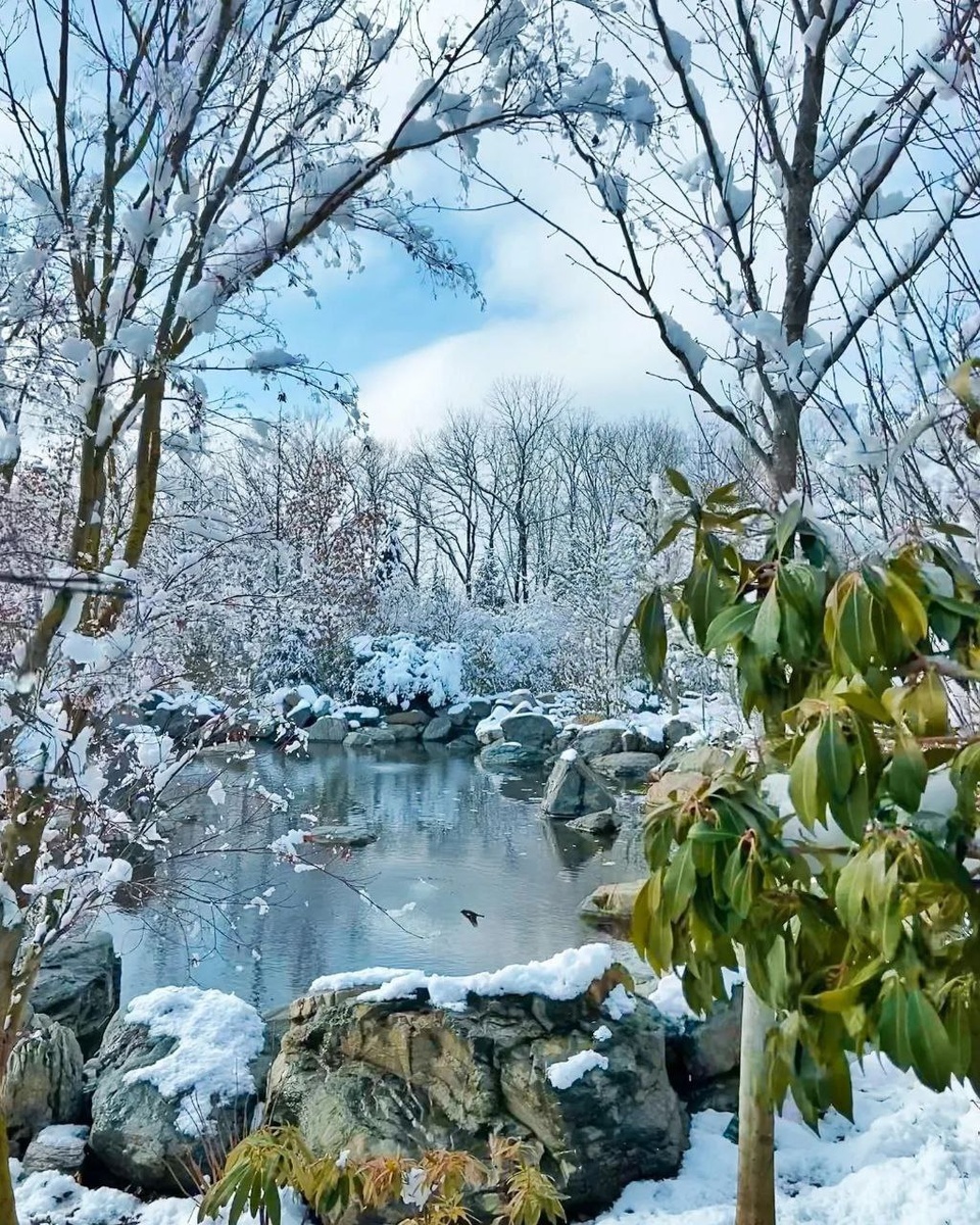 В японский сад приезжают любоваться снегом (юкими)