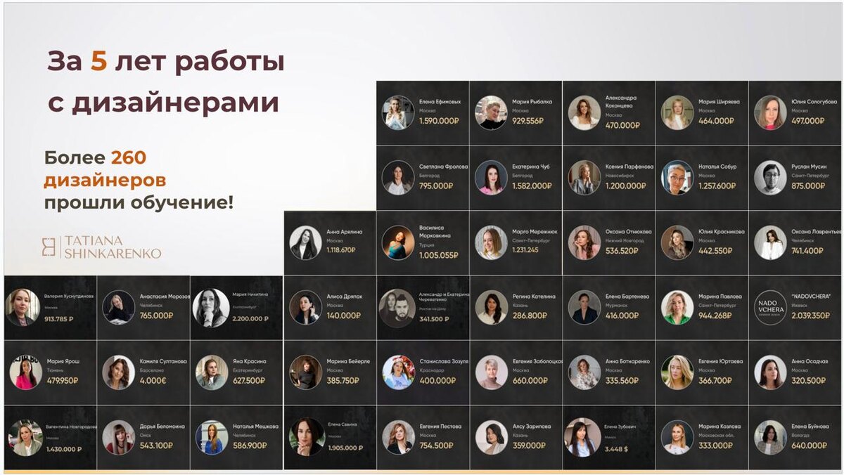? За 5 лет работы моей онлайн-школы главным достижением стали не просто цифры в кейсах. Да, у нас огромное количество кейсов с ростом доходов дизайнеров. А главное достижение - это то, как у дизайнеров меняется мышление и отношение к своей деятельности. Люди приходят в обучение с ощущением: «Я вроде дизайнер, но всё как-то хаотично, нестабильно, на интуиции». А выходят с четким понимание какие действия дают какой результат. За время обучения дизайнеры: — переходят из формата хобби в бизнес — начинают чётко видеть, где и почему они теряют деньги — понимают, как правильно выстраивать отношения с клиентом — усиливают сервис так, чтобы клиенты рекомендовали их и рос "Сарафан" — выстраивают партнёрскую сеть, из которой приходят заявки — ведут контент в соцсетях так, чтобы его не просто смотрели, а оставляли заявки — понимают, как запускать рекламу, какой бюджет закладывать и как его контролировать — начинают вести учёт денег так, чтобы не уходить в минус, а реально зарабатывать — учатся