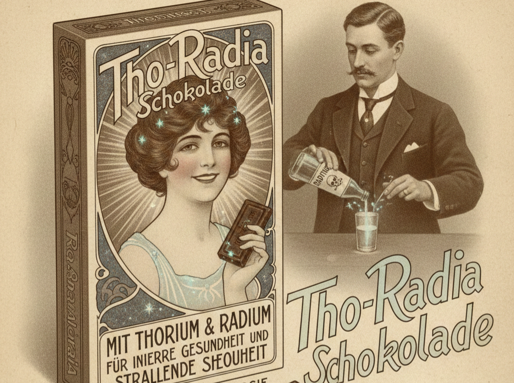 В начале XX века, до того как мы поняли, что радиация — это плохо, многие верили в её чудодейственные свойства. В Германии продавался шоколад "Tho-Radia" с добавлением... тория и радия.