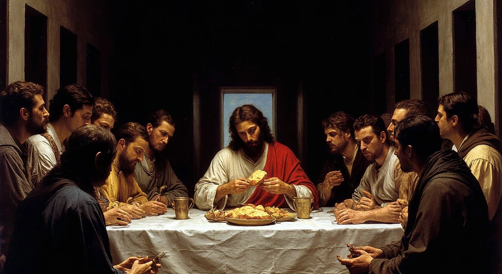 На следующий день, накануне Пасхи, Иерусалим ожил. Город был полон паломников, и среди них ученики Иисуса передвигались с особой осторожностью. Всё вокруг было окутано тайной и страхом. Утром Иисус призвал двух учеников — Петра и Иоанна — и дал им загадочное поручение. «Пойдите в город, — сказал Он, — и найдите мужчину с кувшином воды. Следуйте за ним». В Иерусалиме, где воду носили женщины, мужчина с кувшином был знаком, указывающим путь. Они нашли его и вошли в дом, где их встретил хозяин. От имени учителя, ученики спросил: «Где комната, где Я могу отпраздновать Пасху с учениками?». Человек, чьё имя осталось неизвестным, указал им просторную горницу, украшенную коврами. Никто из остальных учеников не знал об этом месте. Это был не просто ужин, а подготовка к событию, которое предстояло сохранить в тайне до последнего момента. Когда стемнело, Иисус пришёл с учениками. Во время ужина Иисус нарушил тишину словами, которые пронзили всех: «Истинно говорю вам: один из вас предаст Меня». В