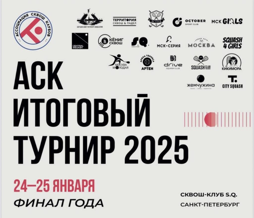 Участники Итогового турнира Ассоциации сквош клубов выступят по мировым стандартам Итоговый турнир Ассоциации сквош клубов (АСК) 2025 состоится в Санкт-Петербурге в сквош-клубе S.Q 24–25 января 2026 года. Это будет ключевое событие сезона, в котором примут участие 24 сильнейших спортсмена России: 12 мужчин и 12 женщин. На два дня Санкт-Петербург станет центром отечественного сквоша, ведь итоговый турнир подведет черту под всем соревновательным годом и будет проводиться в одном из форматов PSA, принятом на международном уровне. Это делает турнир уникальным для России и свидетельствует о включенности нашей страны в мировую повестку нового олимпийского спорта. Среди участников Итогового турнира АСК 2025 — игроки, имеющие солидный международный опыт. Среди них Владислав Титов, занимавший 106-е место в мировом рейтинге, и теперь является одним из наиболее узнаваемых российских игроков за рубежом. Не меньше заслуг у Макара Есина — лидера сборной команды Москвы и России. В 2025 году представ