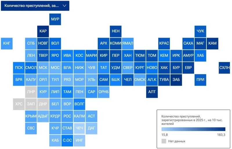 Белгородская область продолжает оставаться одним из самых безопасных регионов России, занимая 9-е место в рейтинге субъектов РФ по преступности, пишут РИА Новости. По данным УМВД России, в 2025 году доля правонарушений среди белгородцев составила 90,2 преступлений на 10 тысяч жителей, из которых 34,1 — особо тяжкие. Среди регионов Черноземья Белгородская область показывает лучший результат, так как Воронежская область в топе расположилась на 14-м месте (93,4 преступления), Курская — на 17-м (94,4 правонарушения), Липецкая — на 32-м (107,1 преступлений), а Тамбовская — на 42-м (свыше 123 преступлений). Самыми безопасными регионами в РФ признаны Чечня (15,8 правонарушения), Ингушетия (37,4 правонарушения) и Дагестан (41,6 правонарушения). Больше всего преступлений в минувшем году зафиксировано на Алтае (176,6 правонарушения), в Забайкальском крае (180,7 правонарушения) и Карелии (183,3 правонарушения). Подписаться на 🗞🗞 | Поддержать бустом