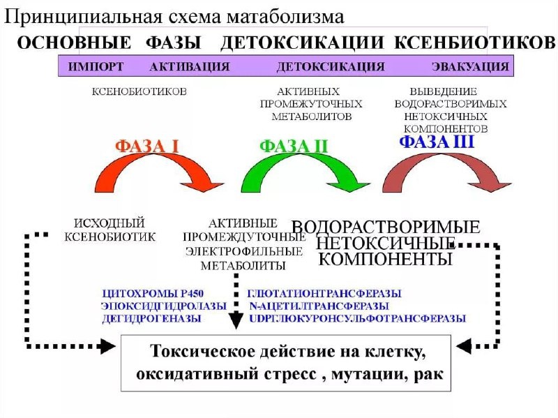 Узнаем свою слабую точку с помощью кофе ⬇️ Сначала нужно сказать, что в детоксе не все так просто. И идея о том, что нужно просто“усилить одну фазу/снизить другую” – главный миф! У каждого из нас своя, генетически заложенная скорость работы системы детоксикации. Она проходит в две ключевые фазы: 🔬 Фаза 1 (разложение) — ферменты (цитохромы P450) расщепляют токсины, кофеин, алкоголь, лекарства. Это создает еще более активные промежуточные соединения. 🔬 Фаза 2 (конъюгация) — этим промежуточным продуктам «приклеиваются» специальные молекулы (глутатион, глюкуроновая кислота и др.), чтобы обезвредить их окончательно и вывести. Есть также 🔬 Фаза 3 (выведение) — через почки и ЖКТ, и эта она должна работать на все 100%! Проблема возникает, когда эти фазы работают не сбалансированно: ⭕️ Если Фаза 1 быстрая, а Фаза 2 медленная — в организме накапливаются те самые активные промежуточные продукты, которые могут навредить. ⭕️ Если обе фазы медленные — токсины выводятся долго. ⭕️ Если пробле