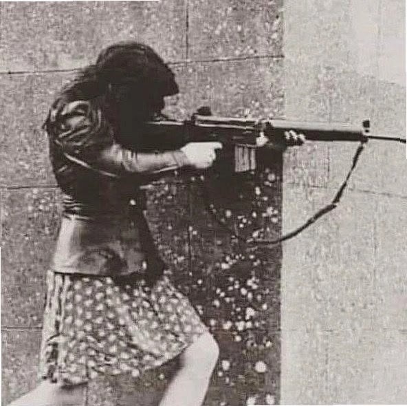 На этом снимке, сделанном в Ирландии в 1972 году, запечатлена девушка, которая стреляет из оружия