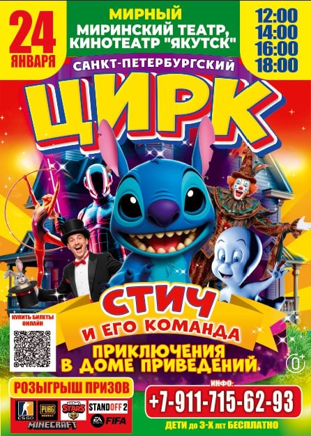 » 🎫 Санкт-Петербургский цирк представляет новое шоу для всей семьи: в замке завелось привидение, которое хулиганит, балуется и чудит, не давая спокойно жить... На помощь для поимки прибывает Стич! Только дружба, любовь и взаимопонимание помогут договориться и успокоить привидение... В программе — волшебные номера, летающая мебель, прыгающие табуретки, дождь из зонтиков, исчезновение зрителей на сцене, гипноз, привидение, весёлая Чудо-Юдо, розыгрыш призов и зажигательный бал! Шоу пройдёт в Мирнинском театре 24 января в 12:00, 14:00, 16:00 и 18:00. Билеты — от 1 000 рублей здесь, дети до 3 лет — бесплатно. А за любую реакцию и комментарий под этим постом мы разыграем 10 пригласительных билетов. 10 победителей выберем случайно в комментариях под этим постом в пятницу, 23 января, после 18:00, удачи! ⚪ Подписаться | Прислать новость