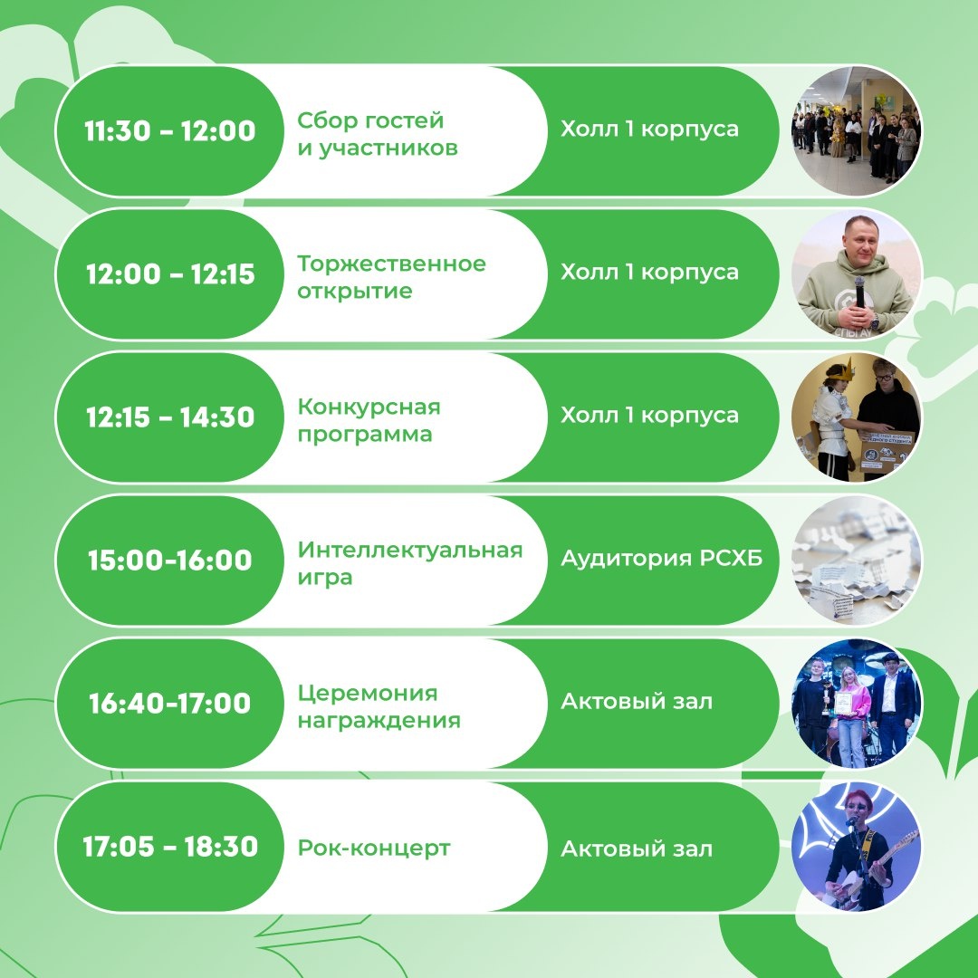 ! Прояви себя и выведи свой институт в лидеры! В программе: 1. Конкурс образов: «Зачётка», «Шпаргалка» или «Хвост» — покажи креатив! 📚 2. Переделанная песня: создай свой хит (минусовки в 2431 НК). 🎤 3. Битва болельщиков: активность группы поддержки дает +1 балл к ГРАН-ПРИ. 📣 4. Приз симпатий: онлайн-выбор победителя по QR-коду. 📲 🏆 Финал и награждение — на драйвовом Рок-концерте! Подробности читайте в МАХ.