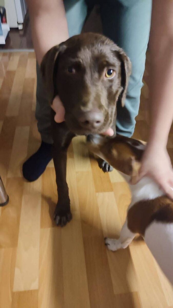 На военведе найдена собака. Никто не терял красавчика? Чистый, не худой, очень добрый. Люди придержали но оставить не могут. Свои животные и все время на работе.