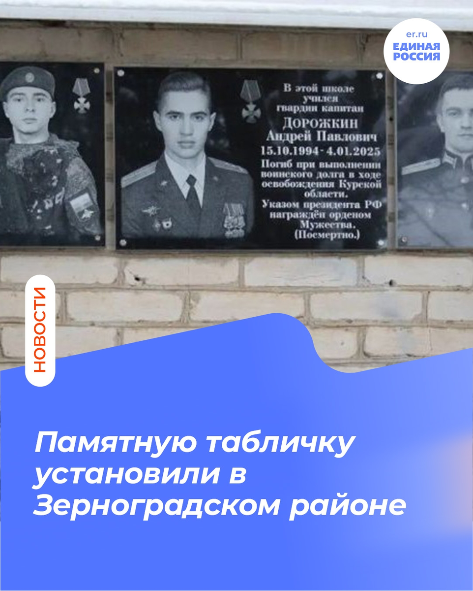 Андрей Дорожкин погиб при исполнении воинского долга в зоне проведения специальной военной операции. Посмертно удостоен Ордена Мужества. Память о Герое теперь увековечена на стене его родной школы. «Мы обязаны свято хранить память о подвиге наших земляков. Их имена навсегда останутся в наших сердцах», - подчеркнул секретарь Зерноградского местного отделения «Единой России» Дмитрий Репка.