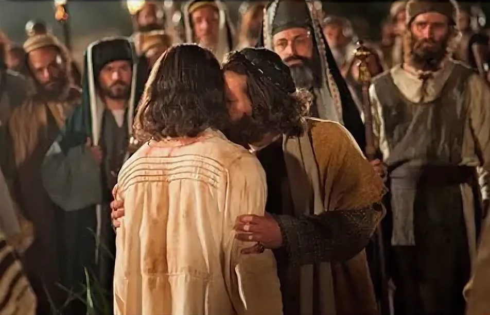 Когда Иисус произнёс: «Вот, приблизился предающий Меня», тишину сада разорвали звуки шагов, голоса и зловещий свет факелов. Из темноты появилась толпа: храмовая стража с дубинами, слуги с факелами, словно пришли ловить разбойника, а не Учителя. Впереди шёл Иуда, один из Двенадцати, как друг, знающий место уединения. Подойдя к Иисусу, он дал знак толпе: «Кого я поцелую, тот и есть». Подойдя, сказал: «Равви!» — и поцеловал Его. Этот поцелуй, знак близости ученика к учителю, стал орудием предательства. Иисус не отстранился, а ответил вопросом, полным скорби: «Иуда! Целованием ли предаёшь Сына Человеческого?» Толпа схватила Иисуса, взяла Его под стражу. В этот момент Пётр, верный ученик, извлёк меч и отсёк ухо рабу первосвященника. Но Иисус остановил его: «Как будто на разбойника вышли вы с мечами? Каждый день Я был с вами в храме и учил, но вы не брали Меня». Он указал на исполнение Писаний, но не как на оправдание поступка, а как на свидетельство Божьего замысла: «Но да сбудутся Писания