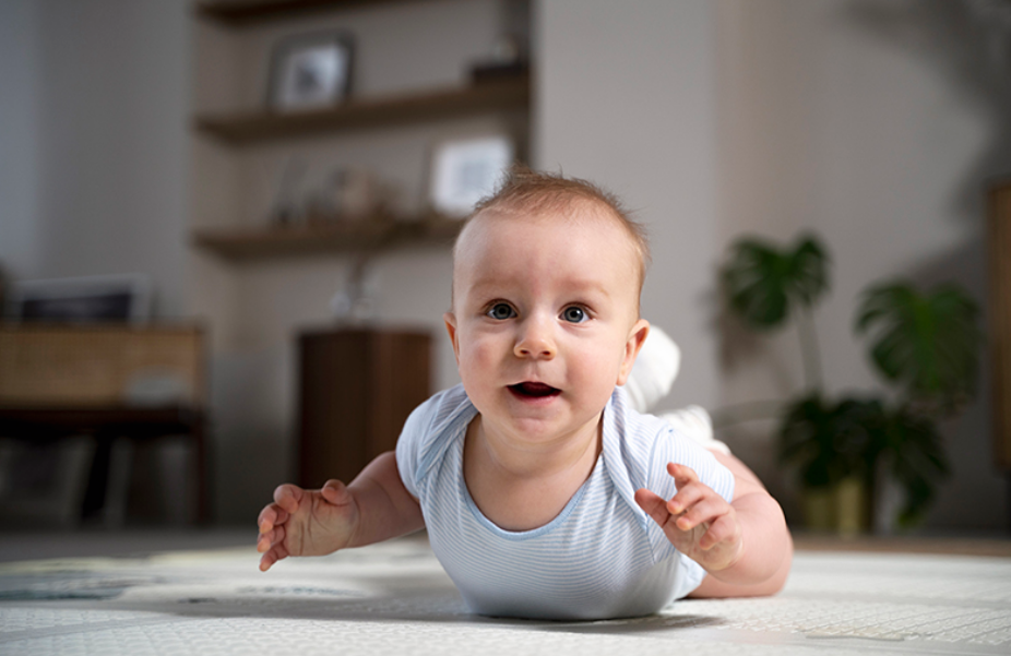 Ох, этот первый крошечный подвиг — перевернуться со своего пузика на спинку! Это как если бы вы, проснувшись утром, вдруг осознали: «А не начать ли мне новую жизнь?» Только в миниатюре. Этот момент не падает с неба, как гром среди ясного неба. Ему предшествуют долгие размышления в стиле: «А что, если я сделаю вот так?..» и целая симфония движений конечностями. Давайте разберёмся, когда это обычно происходит, какие «намёки» даёт малыш, что он уже на грани подвига, и как мы можем помочь ему — без давления, но с добротой и вниманием. Обычно малыши делают свой первый сольный переворот с живота на спину где-то в 4–5 месяцев. Но! Переворот назад, со спинки на живот — задачка с повышенной сложностью, которая чаще всего поддаётся к 5–7 месяцам. Овладение обоими направлениями — это уже почти уровень «мастер Йода» и случается ближе к 7 месяцам и далее. Не паникуем, если ваш малыш в 4 месяца ещё лежит как бутерброд на диване. У всех свой тайминг. Главное — наблюдать, а не сравнивать. Но если к 7
