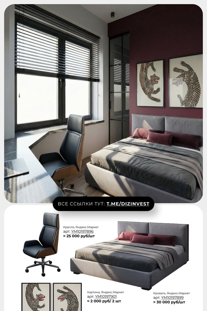 Как вам сочетание? Прикрепляю ссылки для вашего удобства: Кровать: https://market.yandex.ru/cc/8Zeko8 Картины: https://market.yandex.ru/cc/8ZemUq Кресло: https://market.yandex.ru/cc/8ZjQdB