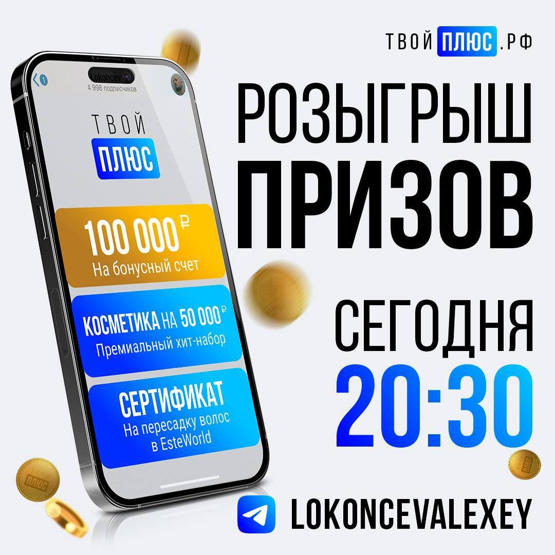Сегодня в 20:30 в прямом эфире в этом канале состоится очередной розыгрыш!