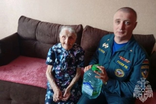 В Ивановской области продолжается традиционная акция «Крещенская вода». До праздника волонтерские организации принимали заявки от жителей старше 65 лет, не имеющих возможности посетить храм и сходить на источник за святой водой. Сейчас — крещенскую воду развозят заявителям. Работники 21 пожарно-спасательной части навестили 99-летнюю Нину Ивановну Арбеньеву. В акции «Крещенская вода» Нина Ивановна участвует второй год подряд. Фото: ГУ МЧС России по Ивановской области