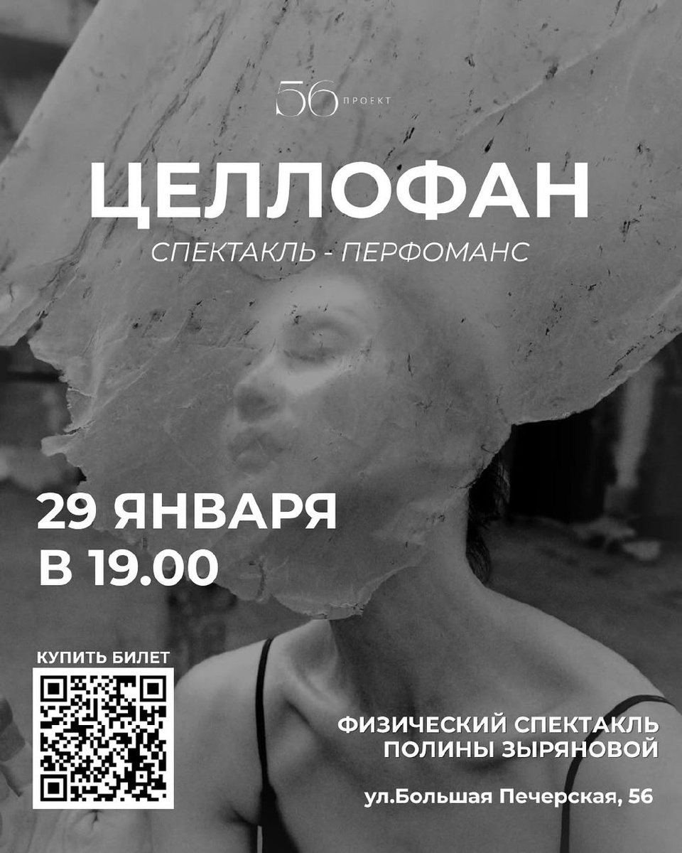 » «Целлофан» — спектакль-перформанс, который в разных городах и пространствах каждый раз обретает новые смыслы, но сохраняет главное. Это история о потерянности человека среди равнодушия современного мира. О жизни, ставшей похожей на целлофан — красивой, бездушной, неперерабатываемой. И, конечно, о любви и истинной красоте, которые мы пытаемся спасти среди этого безумия. «Целлофановые люди грязным снегом с неба вниз. Не получится увидеть выражения их лиц… На испуганном обрывке из вчерашних новостей спит котёнком состраданье, промерзая до костей…» 29 января в 19:00 Проект 56, ул. Большая Печерская, 56 😄 Мероприятия Нижний Новгород. Я местный! 📱 Telegram | 📲 MAX