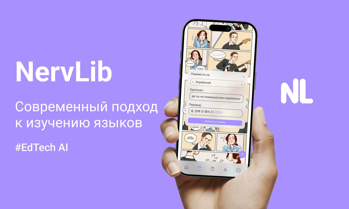 Человек открывает комикс, чтобы отдохнуть, и заодно «подтянуть» корейский. Но через пять минут всё ломается: кругом незнакомые слова, словарь в отдельном приложении, бесконечные переключения. Сюжет рассказа рвётся, мотивация падает, а изучение языка снова откладывается «на потом». Александра Корнаухова, которая сама изучает корейский язык, решила соединить приятное с полезным и создала сервис NervLib. Здесь можно учить по комиксам восточные языки, публиковать свои комиксы и находить соавторов. Слова в контексте здесь помогает переводить искусственный интеллект, есть личный словарь и флэш‑карточки. Чтобы учеба шла через интересный сюжет, а не зубрёжку. В поддержку развития сервиса его создательница открыла крауд-проект. Он поможет улучшить систему переводов и распознавания различных авторских шрифтов на картинке комикса с помощью ИИ. Чтобы перевод работал точно по смыслу. Комикс — читается. Язык — учится. Стресс обучения — отменяется