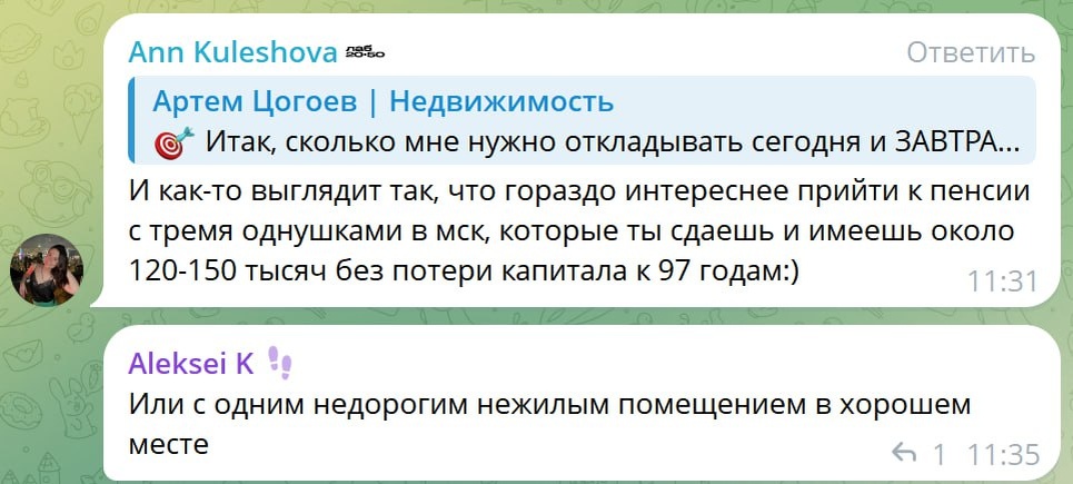 А пора бы уже начать! 🎲 В моем примере пенсионный капитал создается фактически с ноля (вернее с ежемесячных ₽68 тыс.) - шаг за шагом. Первую однушку в ценах 2026 года можно будет купить в 2038 году (₽13 млн.руб). И только если до этого инвестировать 12 лет стабильно под 12%. Что это за однушка такая за ₽13 млн.? В 15-и минутах от метро, дома 70-х годов ХХ века и т.д. В общем, к 2038 году - полный хлам. 🕹Это решение сразу же приведет к потерям. Потому что приносить эта однушка еле-еле будет +3% годовых, а расти в цене на +5% в год, при таргете в 12%. Дополнительно убивается диверсификация, ликвидность и создается опасный перекос портфеля, когда один актив занимает 100%. Один город, один сегмент рынка, один тип актива. 🧩На вторую однушку придется копить все оставшиеся до пенсии годы. Не уверен, что накопить удастся, вернее чисто математически этого случится не должно. Потому что от первой однушки, в которой сосредоточен капитал, совокупно получается 8% годовых, а инфляция (в моем п