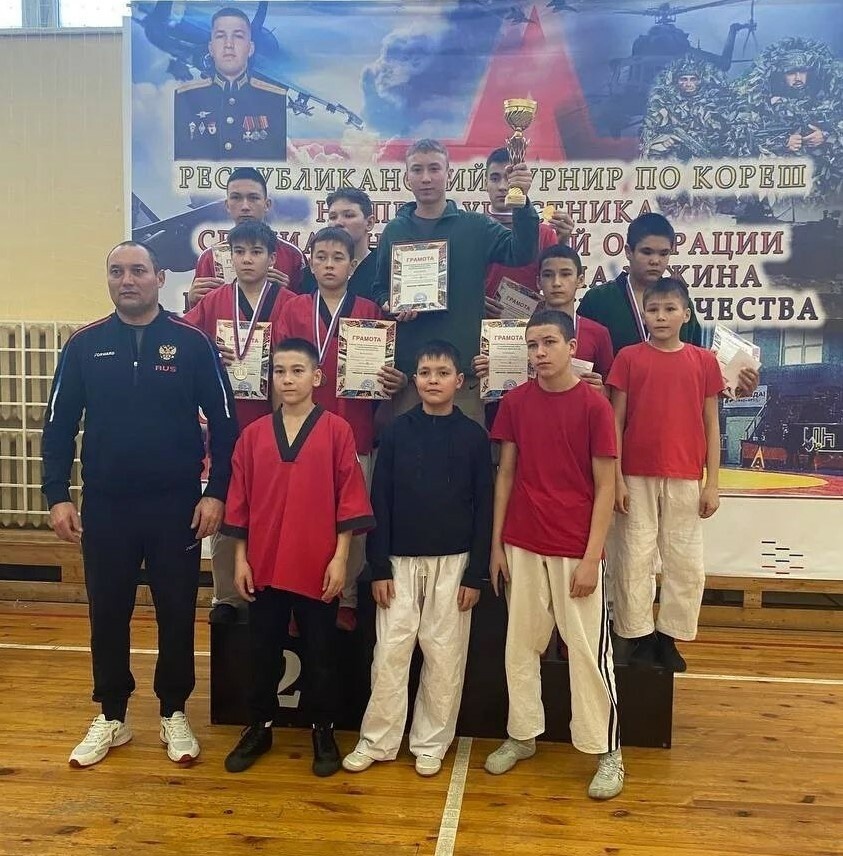 Республиканский турнир по борьбе корэш на приз участника СВО Айнура Хужина «Кубок батыра - защитника Отечества» состоялся в с. Стерлибашево... Республиканский турнир по борьбе корэш на приз участника СВО Айнура Хужина «Кубок батыра - защитника Отечества» состоялся в с. Стерлибашево. Борцы нашего района приняли активное участие в соревнованиях, показав отличный результат. В различных весовых и возрастных категориях чемпионами стали Ильназ Зубаиров, Вильдан Тимергалин (тренер-преподаватель Ильмир Юлмухаметов) и Рамазан Таштимеров (тренер-преподаватель Айнур Хисамутдинов). Серебро взял Радмир Кусмаев, бронзовые медали завоевали Раян Маликов, Ильдар Хамитов, Динислам Салимов и Ильдар Умрзаков (воспитанники Айнура Хисамутдинова). Поздравляем с успехом, батыры! Фото А. Хисамутдинова.
