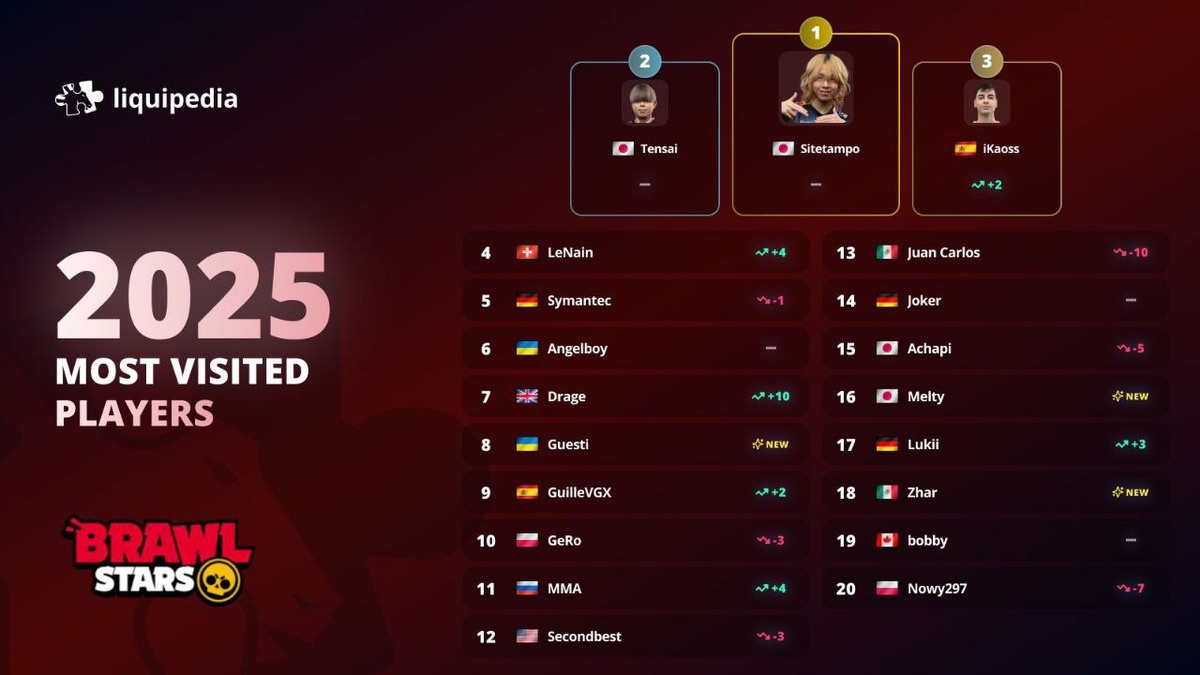 Портал Liquidpedia представил топ-20 самых популярных игроков, чью страницу посещали чаще всего. Первое место занял Sitetampo, за ним идут чемпион мира Tensai и IKaoss. В топе также есть, по непонятной причине, Пётр Олегович, который не играет уже давно, а также AngelBoy и Guestii на 6 и 8 местах. ✅Новости по Clash Royale - ТЫК 💬Новости по Roblox - ТЫК Мир Supercell. Подписаться