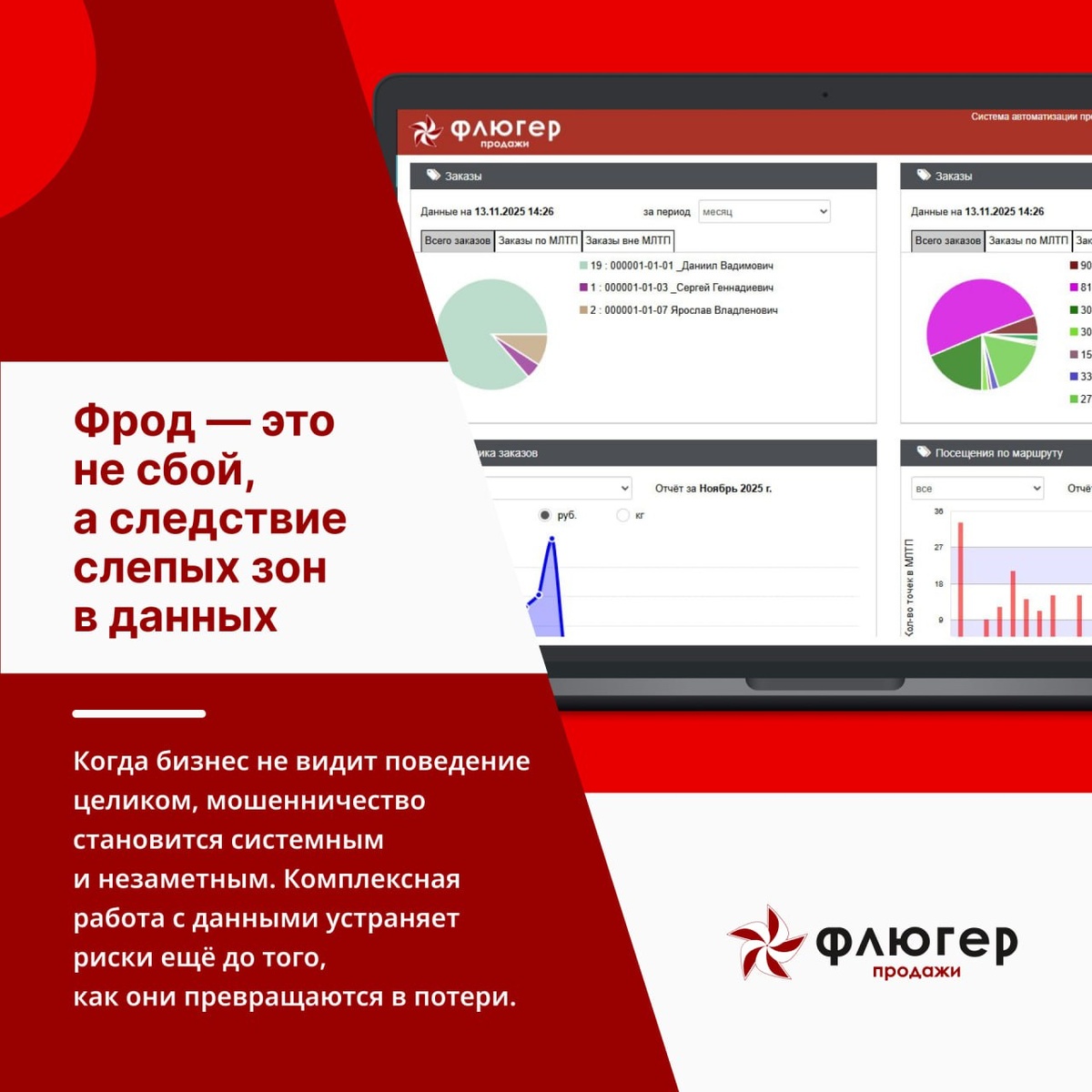 Ритейл теряет десятки миллиардов долларов в год из-за фрода — и это уже не про «хитрых покупателей», а про системную уязвимость процессов. Эксперты рынка сходятся во мнении: мошенничество растёт там, где бизнес не видит поведение целиком — ни клиента, ни сотрудника, ни цепочку операций. Сегодня фрод редко выглядит как одиночный инцидент. Это повторяемые сценарии: аккуратные, массовые и почти незаметные в операционной рутине. Именно поэтому ручной контроль перестал работать — он реагирует слишком поздно. Наш подход здесь прагматичный. Фрод — это задача данных и связей между ними. Пока события рассматриваются по отдельности, бизнес теряет деньги. Когда же операции, поведение и контекст собираются в единую картину, риск становится управляемым, а не «форс-мажором». В системе «Флюгер-Продажи» такие риски изначально не становятся проблемой. Комплексный подход к данным и процессам заложен в архитектуру с самого начала, поэтому устойчивость достигается не за счёт «латания дыр», а как естест