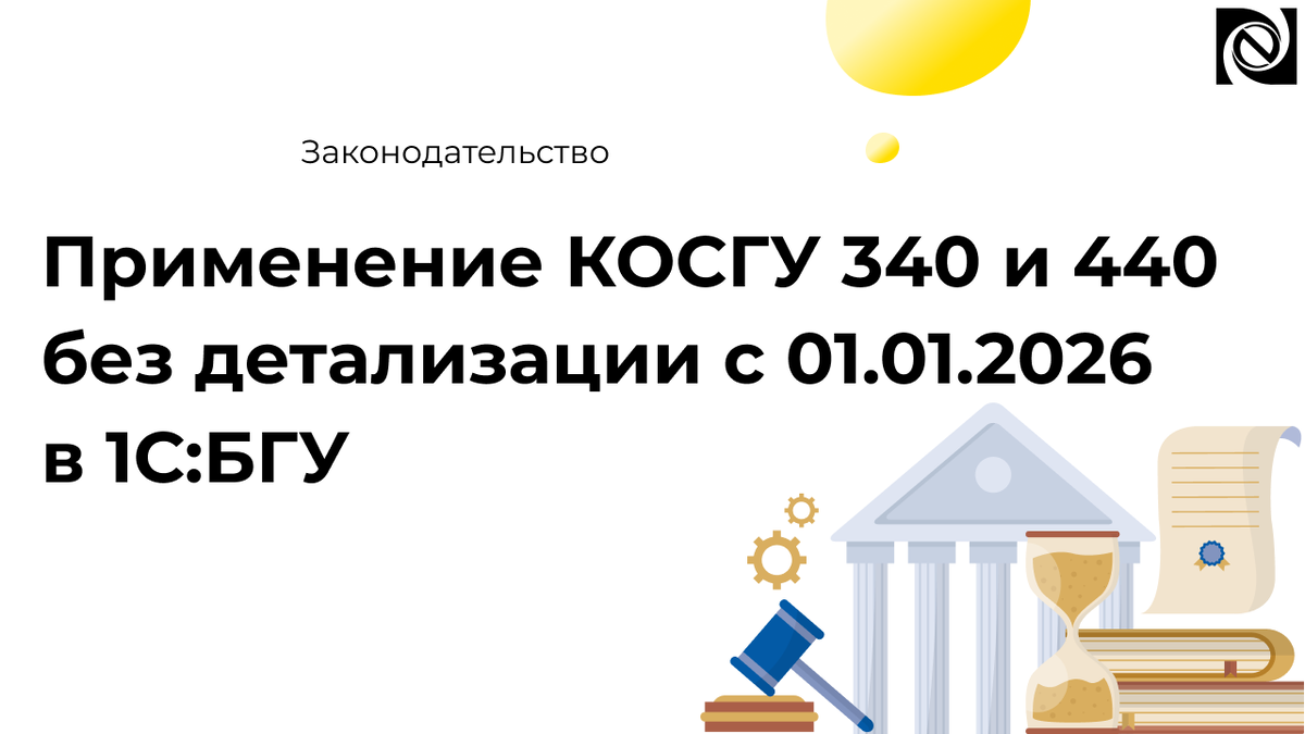 Применение КОСГУ 340 и 440 без детализации с 01.01.2026 в 1С:БГУ