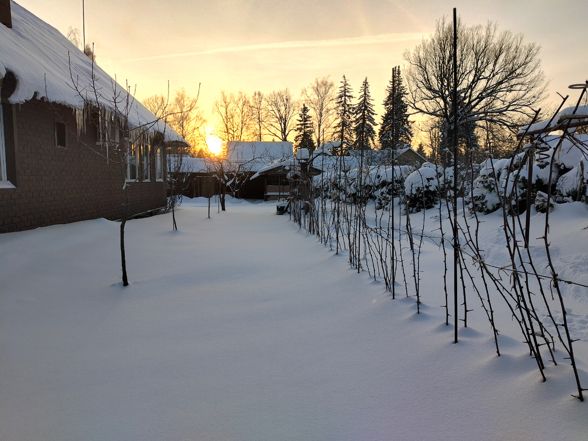 Вечером приехали остальные и мы дружно чистили дорожки по всему саду. Снег плотный, морозный, наверное полметра толщиной.