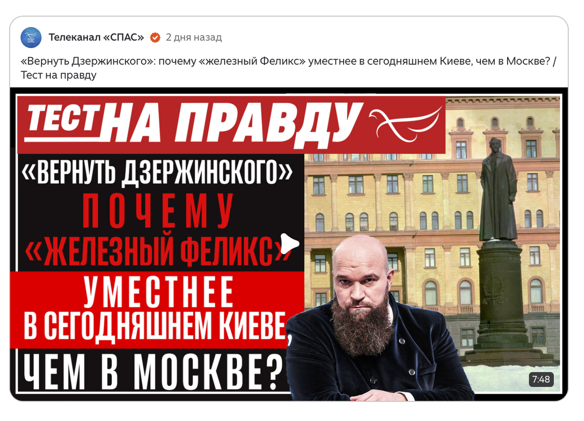 Недавно я посмотрел ролик телеканала «Спас», посвящённый попыткам КПРФ вернуть памятник Феликсу Дзержинскому на Лубянскую площадь — туда, откуда он был демонтирован в 1991 году. В самом ролике эти попытки подвергаются критике, и с этим трудно не согласиться. Историческая роль Дзержинского напрямую связана с массовым террором, внесудебными расправами и идеологической русофобией. Он не был ни государственным мыслителем, ни созидателем, ни реформатором — его «заслуга» заключалась в создании и институционализации репрессивной машины, направленной прежде всего против собственного народа. Попытки неокоммунистов представить Дзержинского «эффективным менеджером» или «строгим, но справедливым государственником» выглядят как сознательная подмена понятий. Террор — даже если он облечён в форму «революционной целесообразности» — остаётся террором. И памятник такому человеку в центре столицы — это не вопрос вкуса или идеологического плюрализма, а вопрос нравственной границы. В то же время в ролике