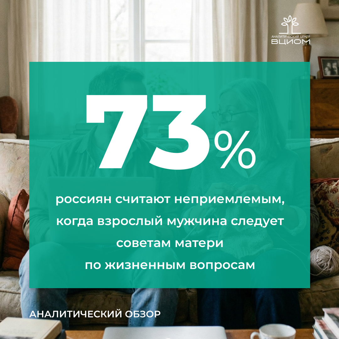 По этим меркам самостоятельная жизнь в России начинается рано, в среднем россияне уходят в самостоятельную жизнь в 21 год, как мужчины, так и женщины, это устойчивая норма, которая почти не меняется от поколения к поколению. На фоне этой устоявшейся нормы раннего отделения совместное проживание с родителями в зрелом возрасте (30-40 лет) становится серьезным социальным препятствием, особенно для мужчин. Большинство женщин не рассматривают такого мужчину в качестве потенциального партнера. Мужчины, в свою очередь, гораздо лояльнее: лишь 39% из них отказались бы от отношений с женщиной в аналогичной ситуации. Если взрослый мужчина следует советам матери, большинство россиян считают это неприемлемым. Женщины в этом вопросе особенно категоричны. Общество склонно интерпретировать такое поведение через призму личностной слабости мужчины или ошибок воспитания, включая гиперопеку со стороны матери. В итоге социальная норма довольно жестко наказывает мужчину за материнское влияние, объясняя его