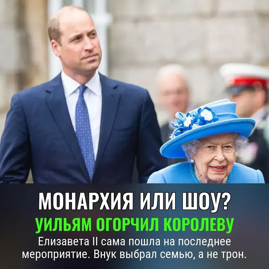 превратится в очередного медийного героя — но не в настоящего монарха. 👑 Его принципы нередко раздражали королеву. В день, когда здоровье подвело Елизавету, она попросила внука заменить её на открытии хосписа, близкого ей лично. Ответ Уильяма был холоден: «Дети важнее». Тот самой «монархией нового типа» Уильям планирует дворцовые дела по расписанию школы детей и общим ужинам, тогда как для королевы семья всегда стояла ниже тронных обязанностей. Анна, а не Уильям, сопровождала Елизавету — и та вышла перед публикой в последний раз, через силу. Монархия как служение или как картинка для Instagram? Вопрос подвис в воздухе вместе с тенью Елизаветиной разочарованной улыбки. Культура TODAY / Зарубежная культура