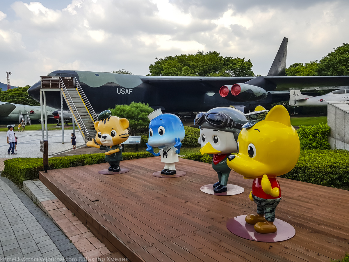 Военный мемориал Кореи в Сеуле открылся в 1994 году на месте бывшего штаба армии, чтобы увековечивать военную историю Республики Корея. Он был построен с целью предотвращения войны, на основе уроков Корейской кампании и для надежды на мирное воссоединение Северной и Южной Кореи. Мемориальное здание имеет шесть крытых выставочных залов и открытую выставочную площадку, демонстрирующую военную технику из Китая, Южной Кореи, СССР и США. Строительство военного мемориала в Корее было завершено в декабре 1993 года. Проект осуществлялся в консультации с военными экспертами при сборе широкого спектра экспонатов в стране и за рубежом. После завершения внутренних работ мемориал официально открылся 10 июня 1994 года и стал крупнейшей достопримечательностью такого рода в мире. Посещение музея бесплатное. Много родителей с маленькими детьми, для которых это, прежде всего, знакомство с техникой. На многих экспонатах можно полазить, а некоторые можно посетить и внутри. Меня же, прежде всего, интересовала наружная экспозиция и, предпочтительно, авиационная техника...