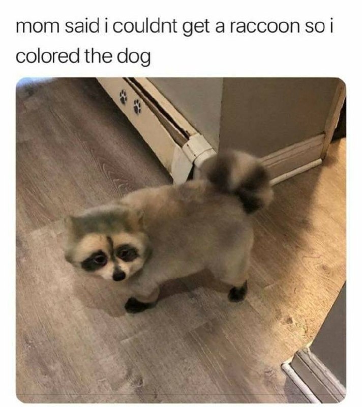 Мама сказала, что я не могу завести енота, поэтому я покрасил собаку!)