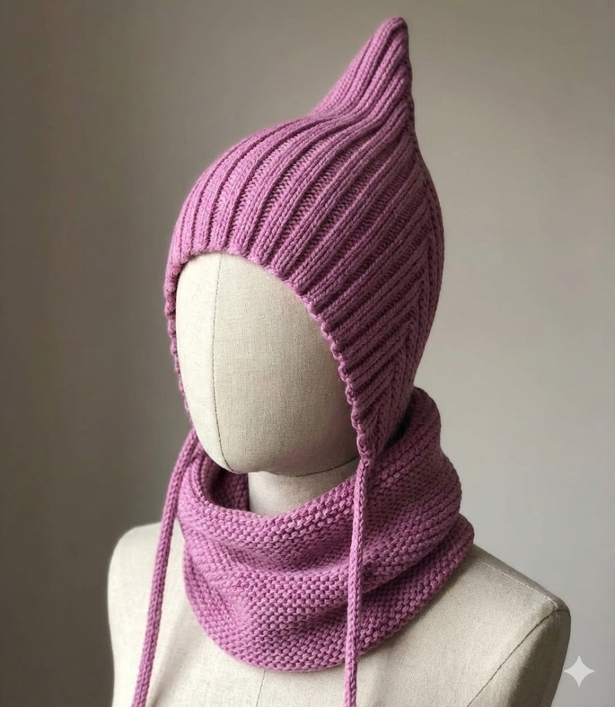 Образец (резинка 2х2 в слегка растянутом виде): 20 петель = 10 см. Шапочка вяжется одним полотном (прямоугольником), которое потом сшивается сзади и дополняется завязками снизу. Сейчас у вас есть прямоугольник. Теперь нужно оформить низ шапочки (горловину), чтобы она держалась на голове. Шапочка готова! 🧙♂️✨