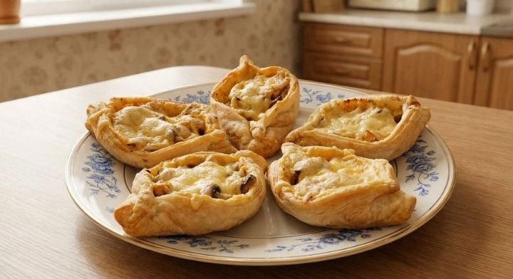 — Аппетитные, ароматные слоёные лодочки с сочной начинкой и расплавленным сыром. ~350 руб. ~КБЖУ на всю порцию (6 слойков): 2200 ккал / Б: 120 г / Ж: 130 г / У: 130 г Ингредиенты: Филе куриное — 300 г Шампиньоны — 300 г Лук репчатый — 1 шт. Сметана — 100 г Соль, перец — по вкусу Тесто слоёное дрожжевое — 500 г Желток — 1 шт. Молоко — 1 ст.л. Сыр твёрдый — 100 г Масло растительное — для жарки Обжарьте лук, грибы и курицу. Добавьте сметану, соль, перец, потушите до загустения. Раскатайте тесто, разрежьте на квадраты, сформируйте лодочки. Наполните начинкой, смажьте смесью желтка и молока, посыпьте сыром. Запекайте при 200°C 20–25 минут до румяной корочки. Рецепты по карману
