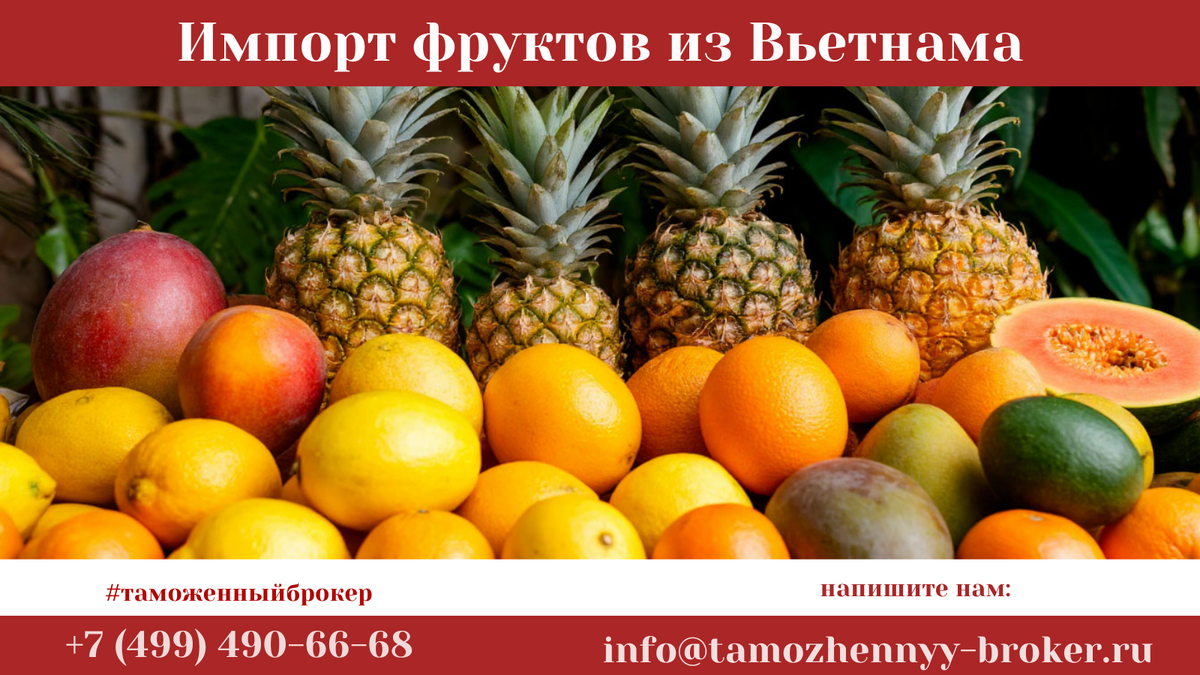 Импорт фруктов из Вьетнама — это выгодное и перспективное направление для российских компаний. При грамотной организации логистики, корректном таможенном оформлении и соблюдении фитосанитарных требований, вьетнамские фрукты обеспечивают стабильную прибыль и расширение ассортимента. Работа с профессионалами в сфере ВЭД позволяет снизить риски и вывести бизнес на новый уровень. Импорт фруктов относится к категории подкарантинной продукции и требует строгого соблюдения таможенных и санитарных правил. При ввозе в Россию необходимо: • корректно определить код ТН ВЭД