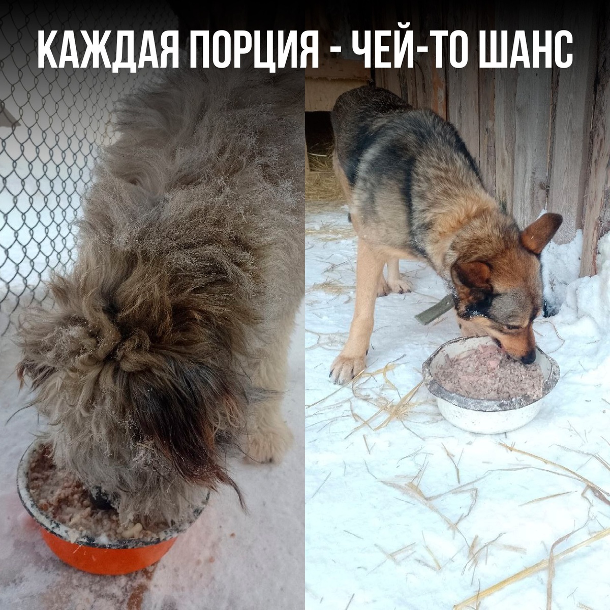 Они едят и молчат. А мы считаем порции, чтобы хватило всем. Пожалуйста, помогите приюту кормом.