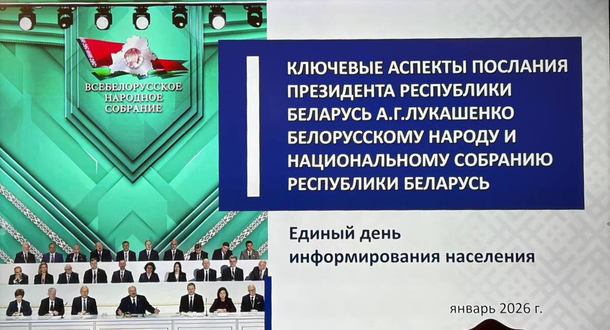 ✔️Тема мероприятия: «Ключевые аспекты Послания Президента Республики Беларусь белорусскому народу и Национальному собранию». 🇧🇾Перед сотрудниками выступил делегат ВНС, начальник отдела перспективного развития Михаил Леонидович Петренко. 👉В своем докладе он подробно остановился на стратегических задачах, обозначенных Главой государства на втором заседании VII Всебелорусского народного собрания. 🖥 Подписывайся на наши соцсети: 💬 VK / 📹YouTube / 📺RuTube / 📱 Instagram / 📱 TikTok