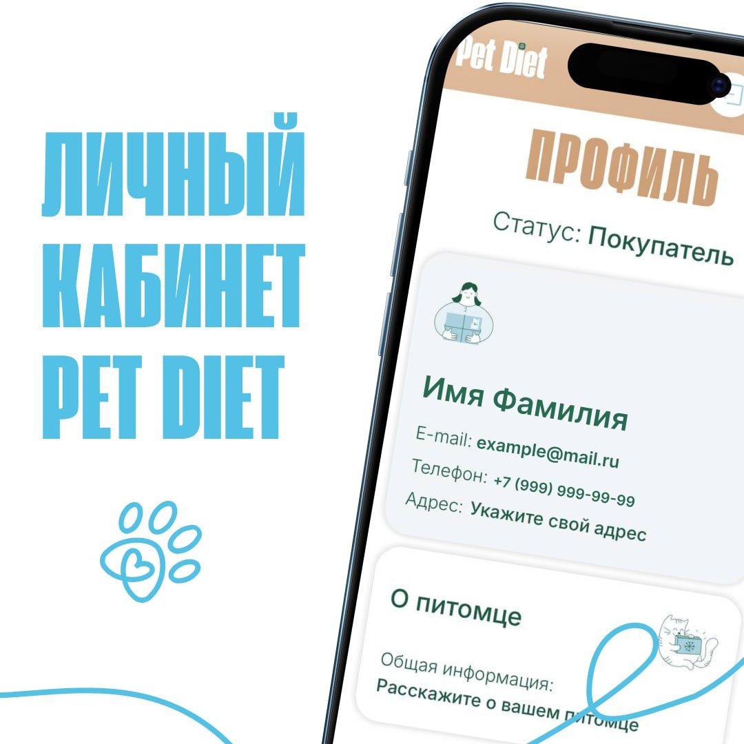 🔹 Быстрое оформление заказов Все данные сохраняются в профиле, повторные заказы оформляются без лишних шагов. 🔹 История заказов В личном кабинете всегда можно посмотреть предыдущие заказы и быстро оформить их снова. 🔹 Новые инструменты - в разработке В будущем в личном кабинете будут появляться новые полезные инструменты. Функционал будет постепенно расширяться. Рекомендуем зарегистрироваться уже сейчас, чтобы пользоваться текущими возможностями и получать доступ к новым инструментам по мере их запуска. 👉 Личный кабинет уже доступен на нашем сайте - https://pet-diet.ru/profile